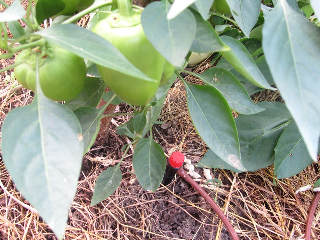 В качестве трубопровода от еврокуба до теплиц задействованы обычные шланги. В самих теплицах установлены две капельные линии, микротрубки Azud и простейшие регулируемые капельницы.